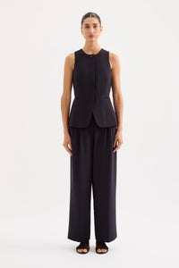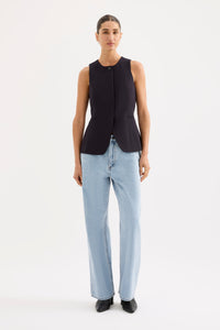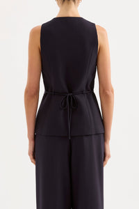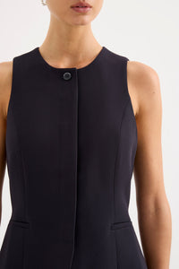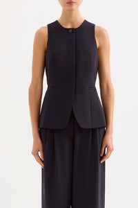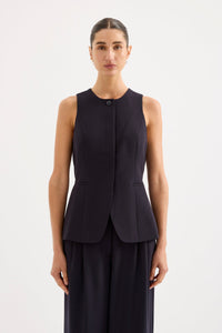 The Andrea Vest is made from a midweight tailoring fabric which has a smooth hand feel. The silhouette is structured and single breasted with a slim fit body. Features include traditional tailoring detailing throughout including branded buttons and tailored vents at back of body.