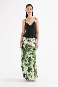 The Cassia Skirt is made in a viscose blend fabrication in our exclusive Cassia print. Cut on the bias, this silhouette finishes just above the ankles. Features include encased elasticated waistband.