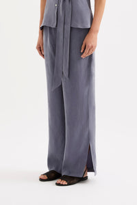 The Devin Tencel Maxi Skirt is made in a tencel blend fabrication with a soft, sueded hand feel. The silhouette is a relaxed, wide leg, full length pant. Features include an elasticated waistband and side seam pockets.