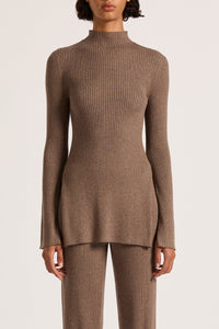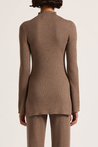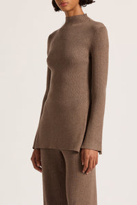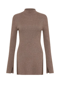 The Malo Knit Tunic is made from a cotton blend yarn that is breathable and has a ribbed finish. The silhouette is fitted to the body with length finishing at hip level. Featured include a mock high neck, long sleeves and slits at side seam.