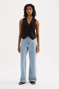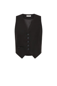 The Orla Vest is made from a classic wool blend suiting fabrication with a smooth hand feel. The silhouette is tailored and slim fitting with a button front opening. Features include a v neck, jetted pocket , branded buttons and adjustable back ties. The Orla Vest is fully lined.