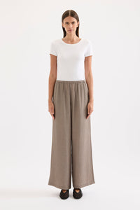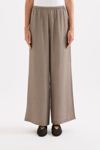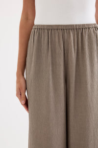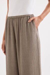The Winfield Pant is made from a crinkle textured fabric which has a dry, lightweight hand feel. The silhouette is relaxed with a wide full length leg. Features include an elasticated waistband and side seam pockets.