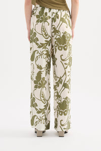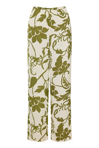 The Dahlia Cupro Pant is made in our signature cupro fabrication in our exclusive Dahlia print. The silhouette is a relaxed wide leg, full length pant. Features include an elasticated waistband, side seam pockets and slits at hem.