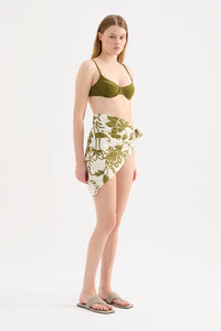 The Dahlia Scarf is made in a viscose blend fabrication in our exclusive Dahlia print. The scarf is a smooth single layer piece with a neat double turned hem. Designed with versatility, this scarf can be worn as either a top, head scarf, or bag accessory.