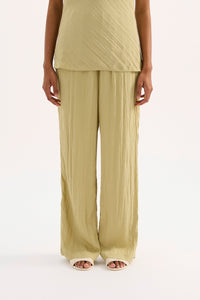 The Alia Pant is made from a viscose blend fabric which is lightweight and has a soft, textured hand feel. The silhouette is a relaxed wide leg, full length pant. Features include an elasticated waistband, side seam pockets and slits at hem.