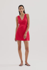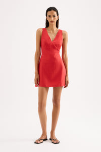 The Blair Linen Mini dress is made from 100% Linen which has been washed for a soft, breathable hand feel. A-line silhouette and mini length. Features include v-neckline with angled underbust seams and invisible zipper at centre back. This garment is fully lined.