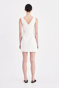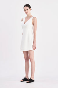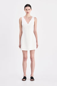 The Blair Linen Mini dress is made from 100% Linen which has been washed for a soft, breathable hand feel. A-line silhouette and mini length. Features include v-neckline with angled underbust seams and invisible zipper at centre back. This garment is fully lined.