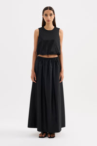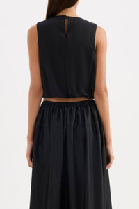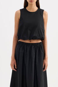 The Briony Top is made from a lustrous cotton poplin that has a smooth and elevated hand feel. The silhouette is a feminine bubble shape that is cropped at the waist. Features include a crew neckline, keyhole opening at back and soft gathering to create a bubble hem. This top is fully lined.
