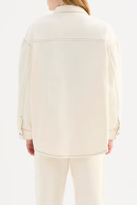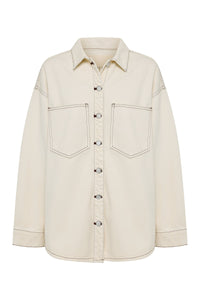 The Bryden Denim Jacket is made from 12.5 oz 100% organic cotton denim, stone washed to Natural. The silhouette is oversized with a drop shoulder and length finishing below the hips. Features include front patch pockets & branded shank button through centre and sleeve cuff.