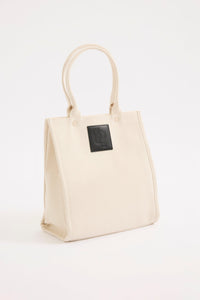 The Nude Organic Tote is made in a heavyweight cotton canvas which has been fused to have a sturdy handfeel. Features include long leather shoulder strap and front leather pocket.
