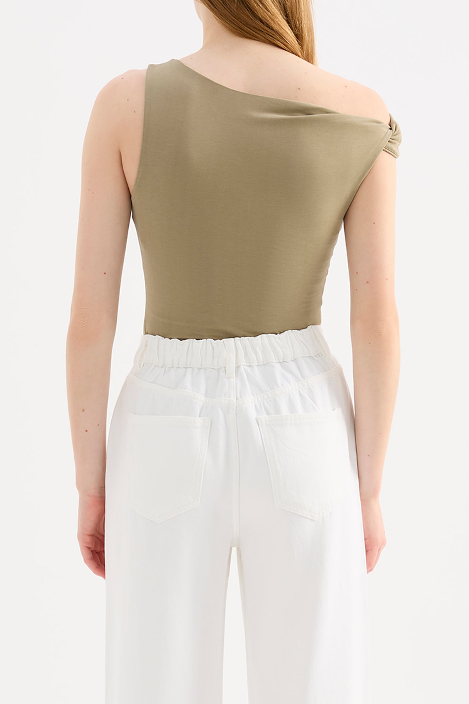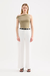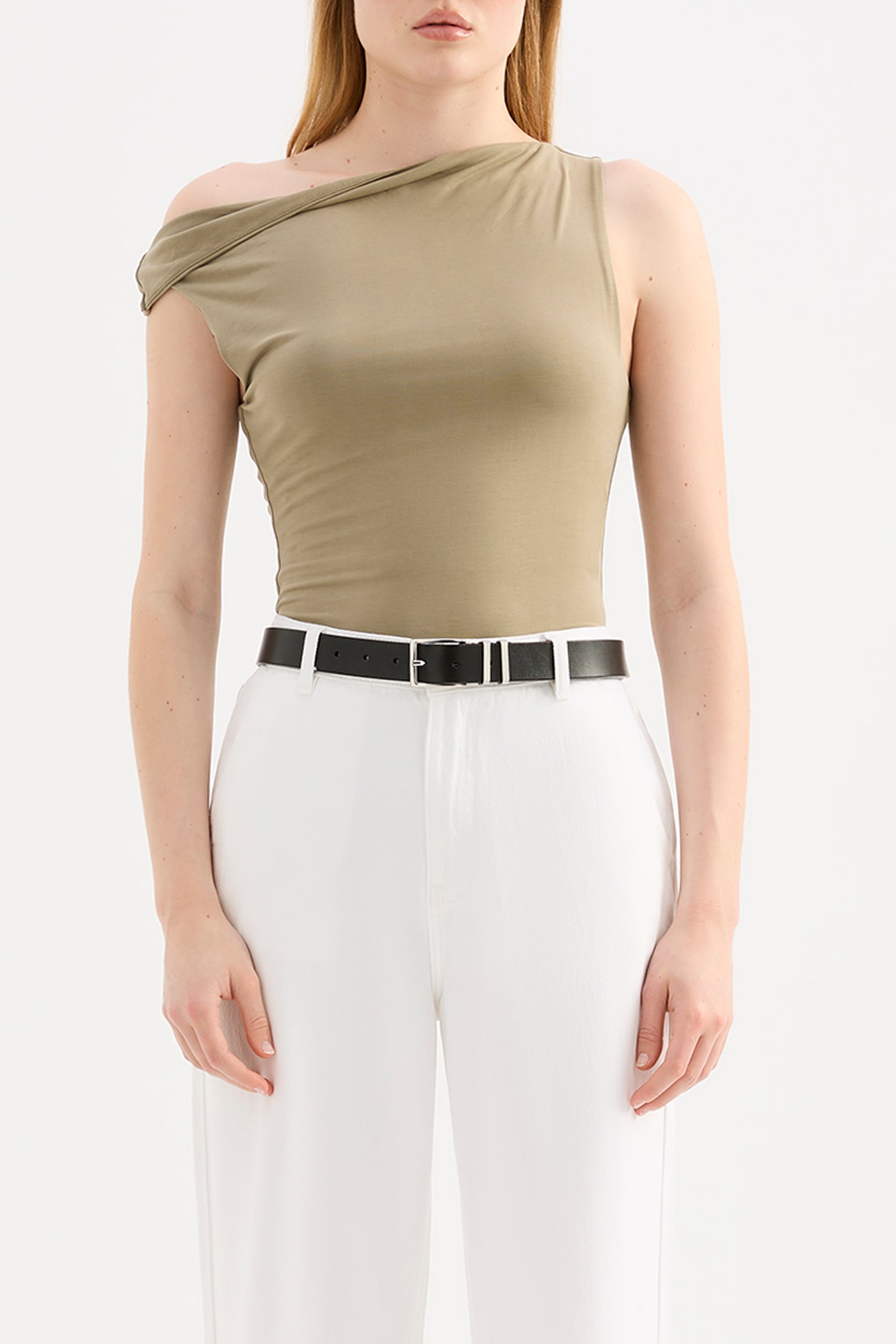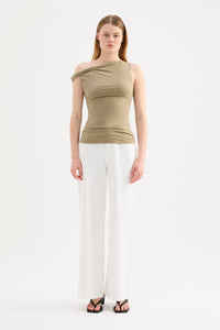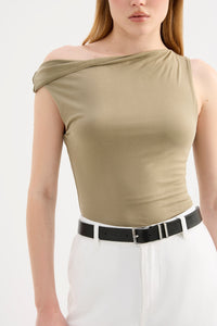 The Chelsea Top is made from a midweight modal fabrication which has a soft, slinky hand feel. The silhouette is a flattering close and finishes at the hips. Features include an asymmetric neckline, with a twist on the off shoulder sleeve.