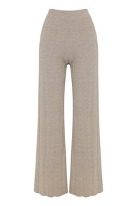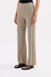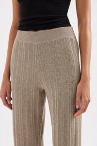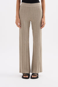The Collins Knit Pant is designed with a textured, knit fabrication from a cotton ribbed yarn blend. This long knit pant features an elasticated waistband, speckled appearance and sits high rise for a flattering shape.