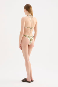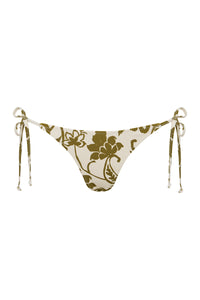 The Dahlia String Bikini Brief is made from a premium recycled stretch fabrication in our exclusive Dahlia print. The bottom is fully lined and features a classic cut with adjustable tie sides. Moderate back coverage.