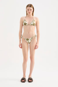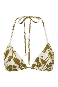 The Dahlia Triangle Top is made from a premium recycled stretch fabrication in our exclusive Dahlia print. The top has a soft tri cup bust and thin elasticated halter straps. Features include adjustable neck and body. This classic cut supports all bust sizes. This top is fully lined.