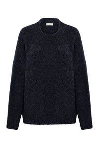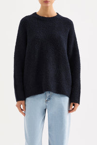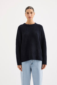 The Elias Knit is made from a recycled, heavyweight yarn which is super soft and has a slight marle effect. The fit is oversized with length finishing above the hips. Features include a crew neckline with ribbed cuff and hem.