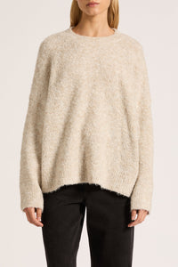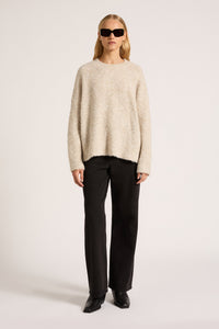 The Elias Knit is made from a recycled, heavyweight yarn which is super soft and has a slight marle effect. The fit is oversized with length finishing above the hips. Features include a crew neckline with ribbed cuff and hem.