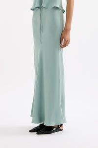 The Lea Cupro Skirt is made in our signature cupro fabrication which has a soft, sueded hand feel. Cut on the bias, this silhouette finishes just above the ankles. Features include encased elasticated waistband with a self cut draw string at centre front.