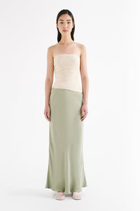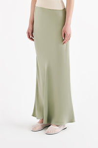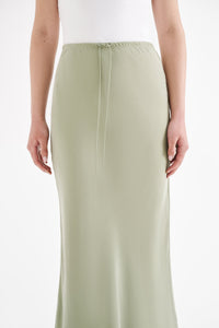 The Lea Cupro Skirt is made in our signature cupro fabrication which has a soft, sueded hand feel. Cut on the bias, this silhouette finishes just above the ankles. Features include encased elasticated waistband with a self cut draw string at centre front.