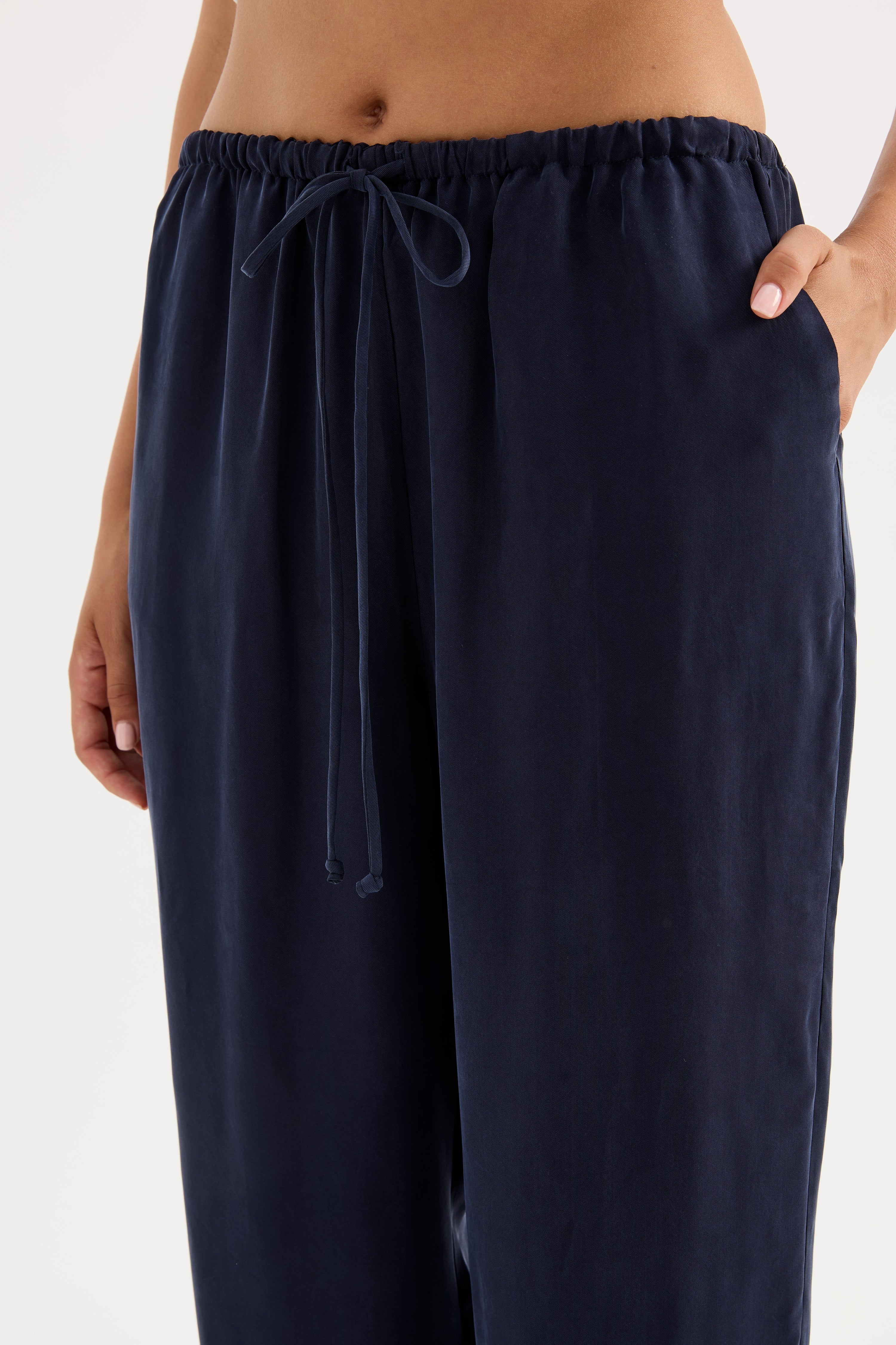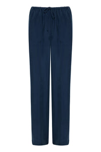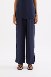 The Linnea Cupro Pant is made in our signature cupro fabrication which has a soft, sueded hand feel. The silhouette is a relaxed wide leg, full length pant. Features include an elasticated waistband, side seam pockets and slits at hem.