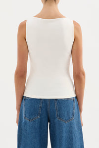 The Lois Organic Tank is made from a lightweight organic cotton jersey, which has a soft, breathable hand feel. The silhouette is a flattering close fit and finishes at the hips. Features include a crew neck. This can be tucked in or worn over midrise bottoms.