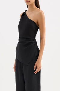 The Lotta Linen Top is made from 100% linen which has been washed for a soft, breathable hand feel. The silhouette is slim fitting with a one-shoulder neckline. Features include an asymmetrical hem, soft gathering and draping through the waist and an invisible zipper at side seam. This top is fully lined.