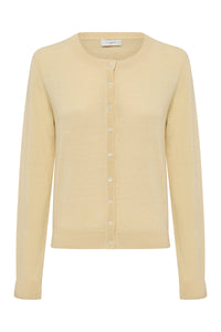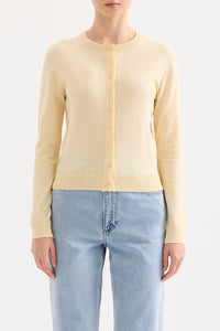 The Louie Linen Blend Cardigan is made from a lightweight yarn with a subtle marled and soft, dry hand feel. The silhouette is a relaxed crew neck cardigan finishing at hip length. Features include centre front button opening and soft rib neckline, cuffs and hem.