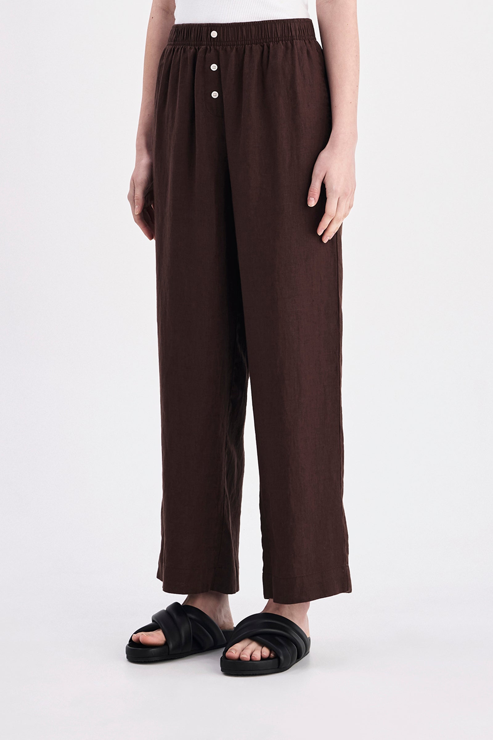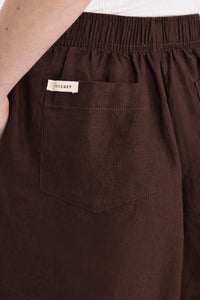 The Lounge Linen Crop Pant is made in a premium 100% organic French linen which has been washed down for a soft and breathable handfeel. The silhouette is a clean, casual fit with a wide leg opening finishing at ankle length. Features include an elasticated waistband with a mock button front, side seam pockets and back patch pockets with Nude Lucy branded label. Pair with a Nude Lounge top in coordinating colours.