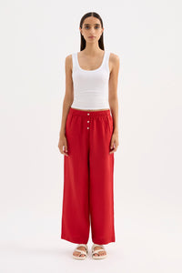 The Lounge Linen Crop Pant is made in a premium 100% organic French linen which has been washed down for a soft and breathable handfeel. The silhouette is a clean, casual fit with a wide leg opening finishing at ankle length. Features include an elasticated waistband with a mock button front, side seam pockets and back patch pockets with Nude Lucy branded label. Pair with a Nude Lounge top in coordinating colours.