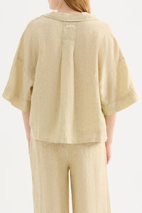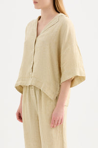 The Lounge Stripe Linen Shirt is made in a premium 100% organic French linen which has been washed down for a soft and breathable hand feel and features an exclusive yarn dyed stripe. The silhouette is a classic shape, with a clean and casual fit. Features include a wide collared neckline, button front opening and wide elbow length sleeves. This shirt also includes the Nude Lucy branded label. Pair with a Nude Lounge Bottom in coordinating colours.