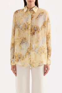 The Lumine Shirt is made from a lightweight lyocell blend fabric in our exclusive Lumine print. The silhouette is relaxed with length finishing at the hip. Features include classic shirting details with front patch pocket and shell buttons.