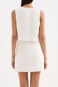 The Marli Linen Top is made from a premium linen which has been washed for a smooth, soft hand feel. The silhouette is a clean, casual cropped fit which finishes at the waist. Features include a wide, crew neckline and button opening at centre back.