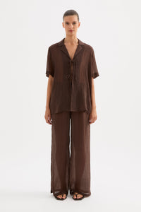 The Maxx Shirt is made from a lightweight, crinkled fabric which has a dry hand feel. The silhouette is an oversized fit, with length finishing at the hip. Features include classic shirting details, front tie closure and slits at hem.