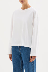 The Organic Long Sleeve Tee is made from a heavyweight organic cotton jersey that has been washed down for a breathable finish and soft hand feel. The silhouette is relaxed with wide full length sleeves. It finishes at cropped length which balances the volume of the sleeves.