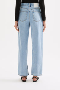 The Organic Split Hem Jean is made from 12 oz 100% organic cotton denim, stone washed to an authentic stone wash blue. The silhouette is fitted at waist and hip with leg relaxed from thigh to ankle length. Features include branded shank button, rivets & Jacron Back patch. Fits true to size, size up for a more relaxed fit.