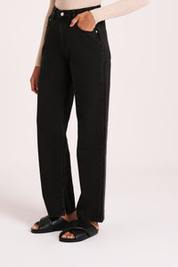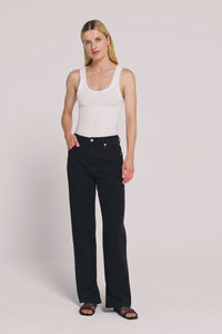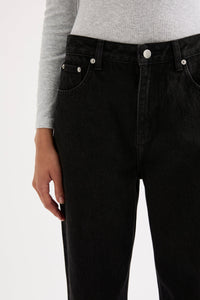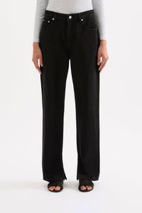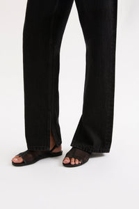 The Organic Split Hem Jean is made from 12 oz 100% organic cotton denim, stone washed to an authentic stone wash black. The silhouette is fitted at waist and hip with leg relaxed from thigh to ankle length. Features include branded shank button, rivets & Jacron Back patch. Fits true to size, size up for a more relaxed fit.