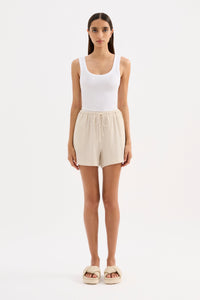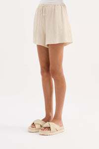 The Palma Short is made from a lightweight textured fabric which has a dry hand feel. The silhouette is relaxed with a wide leg opening. Features include an elasticated waistband with a drawcord and side seam pockets. These shorts are fully lined.