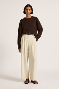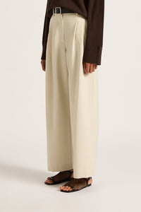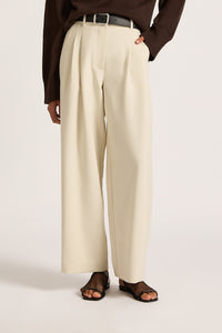 The Phoenix Tailored Pant is made from a tailoring fabrication. The silhouette is a classic high-rise with wide tailored leg finishing full length. Features include front pleats at waist, elasticated back waistband & concealed button and trouser hook closure.
