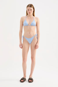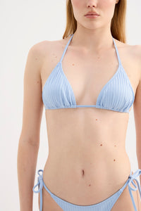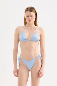 The Rib Triangle Top is made from a premium recycled stretch fabrication with a soft hand feel and wide rib finish. The top has a soft tri cup bust and thin elasticated halter straps. Features include adjustable neck and body.