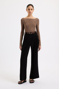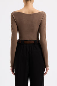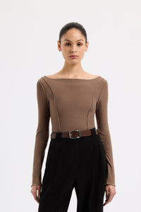 The Romee Top is made from organic cotton fabrication which is soft on the skin. The silhouette is a flattering close fit with length finishing at the hips. Features include a boat shape neckline and front panel detail.