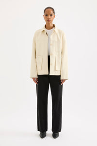 The Telsey Faux Leather Jacket is made from PU leather and has a smooth, buttery finish. The silhouette is relaxed with a drop shoulder and length finishing above the hips. Features include front button opening, patch pockets and vent on back.