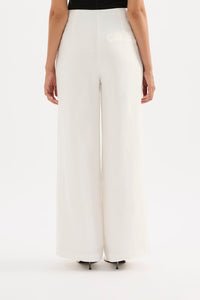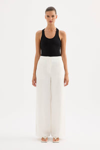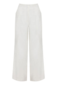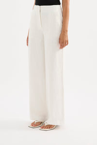 The Theo Linen Pant is made from a premium linen which has been washed for a smooth, soft hand feel. The silhouette is a classic tailored fit with a high waist, wide legs and length finishing full length. Features include a functioning fly front and side seam pockets.