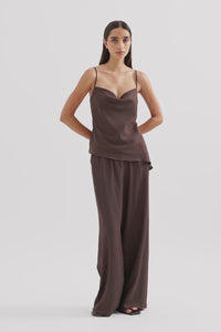 The Winfield Cami is made from a crinkle textured fabric which has a dry, lightweight hand feel. Cut on the bias, this silhouette drapes over the body softly and finishes below the hip. Features include a soft cowl neckline, thin adjustable straps and an asymmetrical hem with side seam slits.