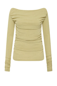 The Ziel Off Shoulder Top is made from a stretch jersey which has a dry hand feel. The silhouette is fitted with long sleeves and length finishing above the hips. Features include a high off shoulder neckline, thumbholes and organic gathering and tuck detailing.
